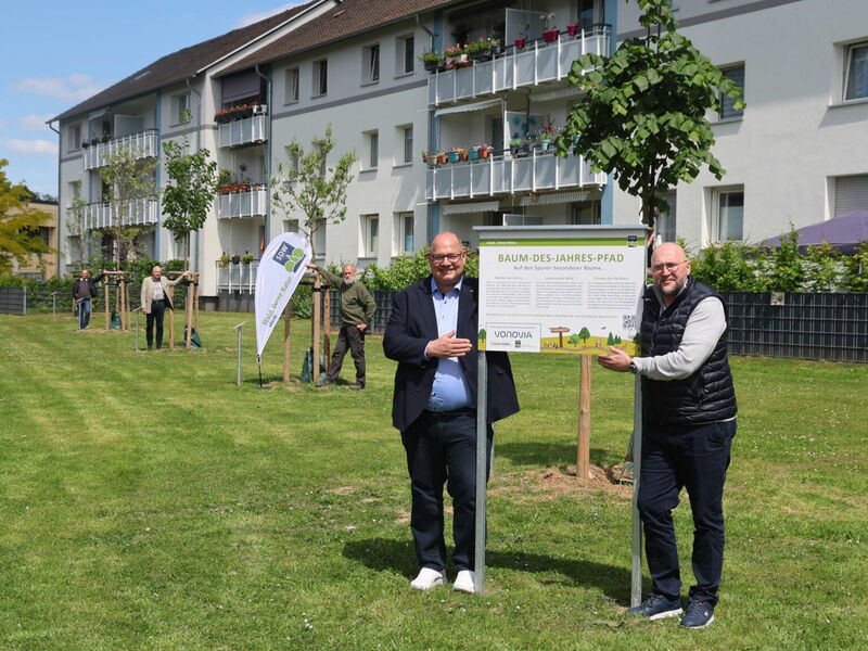 Jetzt, im Frühjahr, tragen alle Bäume ihre Blätter - ein deutliches Zeichen, dass sie gesund angewachsen sind. Jeder neugepflanzte Baum im Montessoriweg wurde mit einem Hinweisschild versehen, das nicht nur den Namen des Baumes verrät, sondern über einen QR-Code auch zu weiterführenden Informationen führt. „Mit dem ‚Baum-des-Jahres-Weg‘ schaffen wir ein lebendiges Naturlexikon mitten im Stadtgebiet“, erklärt Vonovia Regionalbereichsleiter Sascha Steiner. „Wir freuen uns, dass wir mit dieser Maßnahme nicht nur zur Verschönerung des Wohnumfeldes, sondern auch zum Umweltschutz beitragen können.“