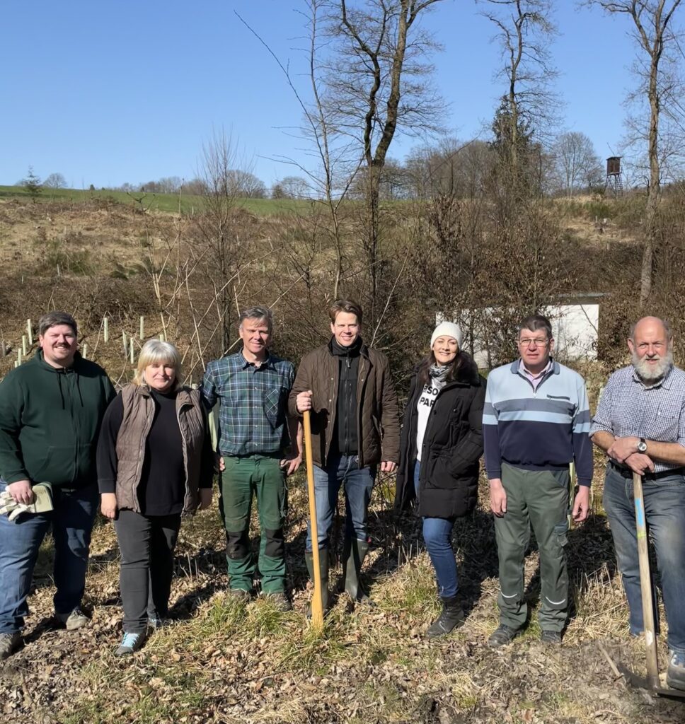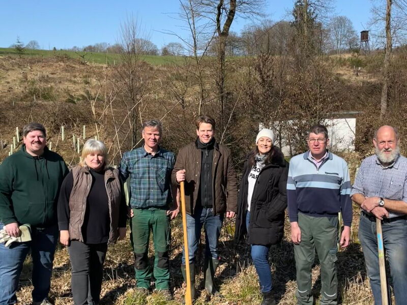 Zuvor hatte der Initiator der Pflanzaktion, Landratskandidat Arne von Boetticher, die Schutzgemeinschaft Deutscher Wald gebeten, ihn bei der Vorbereitung und Baumartenwahl zu beraten. Das SDW-Konzept, angepasst an die Standortbedingungen möglichst viele unterschiedliche Baumarten zu pflanzen, stieß bei ihm sofort auf offene Ohren. So wurden schließlich Esskastanie, Baumhasel, Traubeneiche, Roteiche, Spitzahorn, Hainbuche und Küstentanne gepflanzt. Gemeinsam mit Rotbuche und Fichte, die aus dem natürlichen Samenvorrat im Boden wachsen, wird auf diese Weise ein vielfältiger Mischwald entstehen.