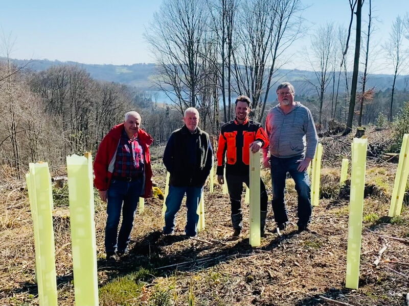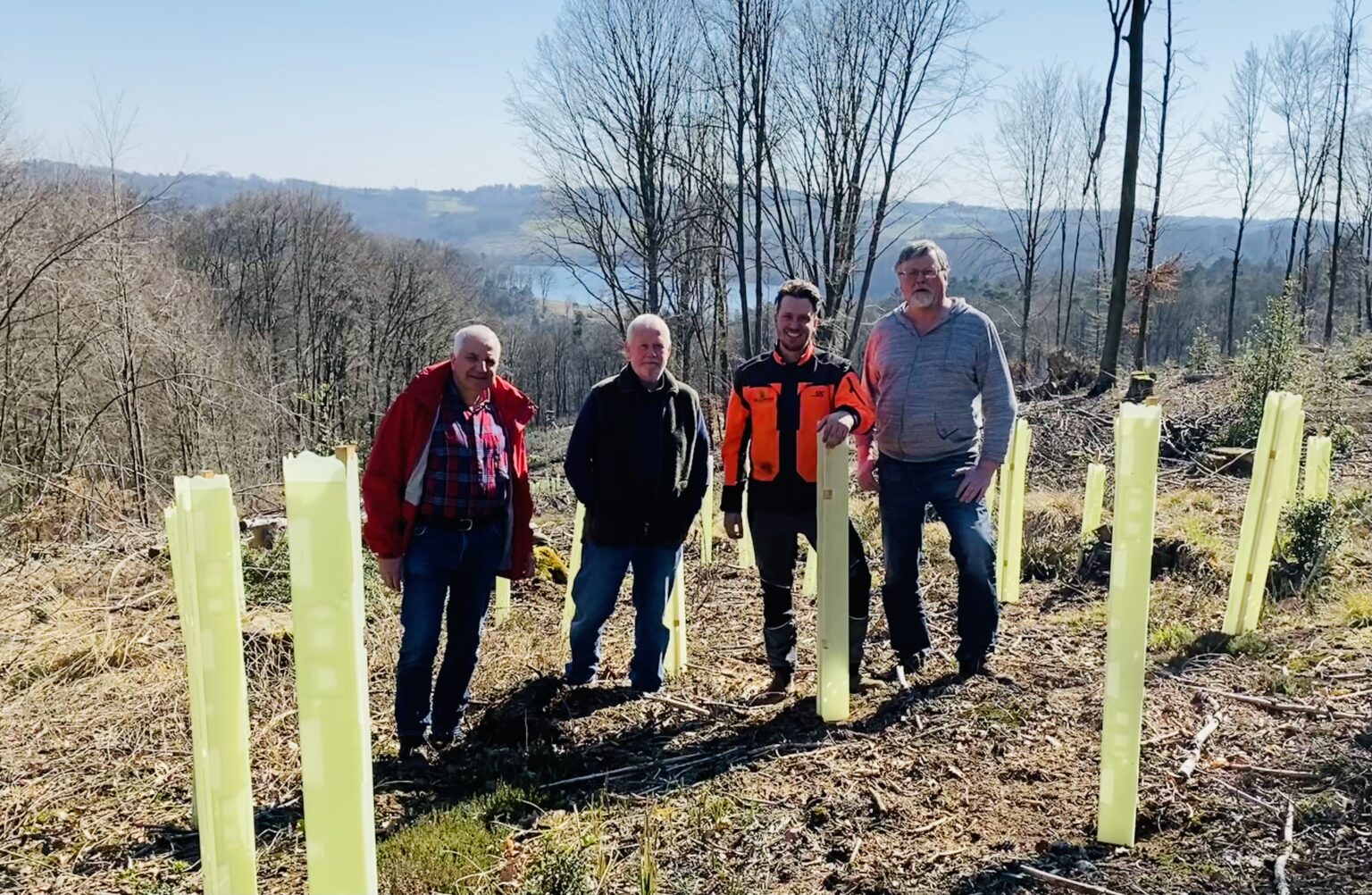 2.500 Bäume haben Förster und Waldarbeiter in den letzten Tagen auf verschiedenen Waldparzellen in Dabringhausen und Dhünn auf Initiative der Schutzgemeinschaft Deutscher Wald Rhein-Berg/Leverkusen (SDW) neu gepflanzt. Nach dem großen Fichtensterben in Folge mehrerer Dürrejahre (2018 – 2021) und dem starken Borkenkäferbefall geht es jetzt darum, die kahlen Waldflächen möglichst zügig wieder aufzuforsten und vor allem darum, einen vielfältigen Wald zu begründen. Mit verschiedenen Baumarten soll er mit den häufiger auftretenden Wetterextremen besser zurecht kommen und für einen stabilen und gesunden Wald sorgen. Deshalb wurden je nach Standort gezielt Baumarten ausgewählt, von die nach heutigem Wissensstand widerstandsfähiger gegenüber den zu erwartenden Klimaveränderungen sind. Insgesamt 11 verschiedene Baumarten kamen auf den 4 ausgewählten Waldparzellen von 4 unterschiedlichen Waldeigentümern zum Einsatz: