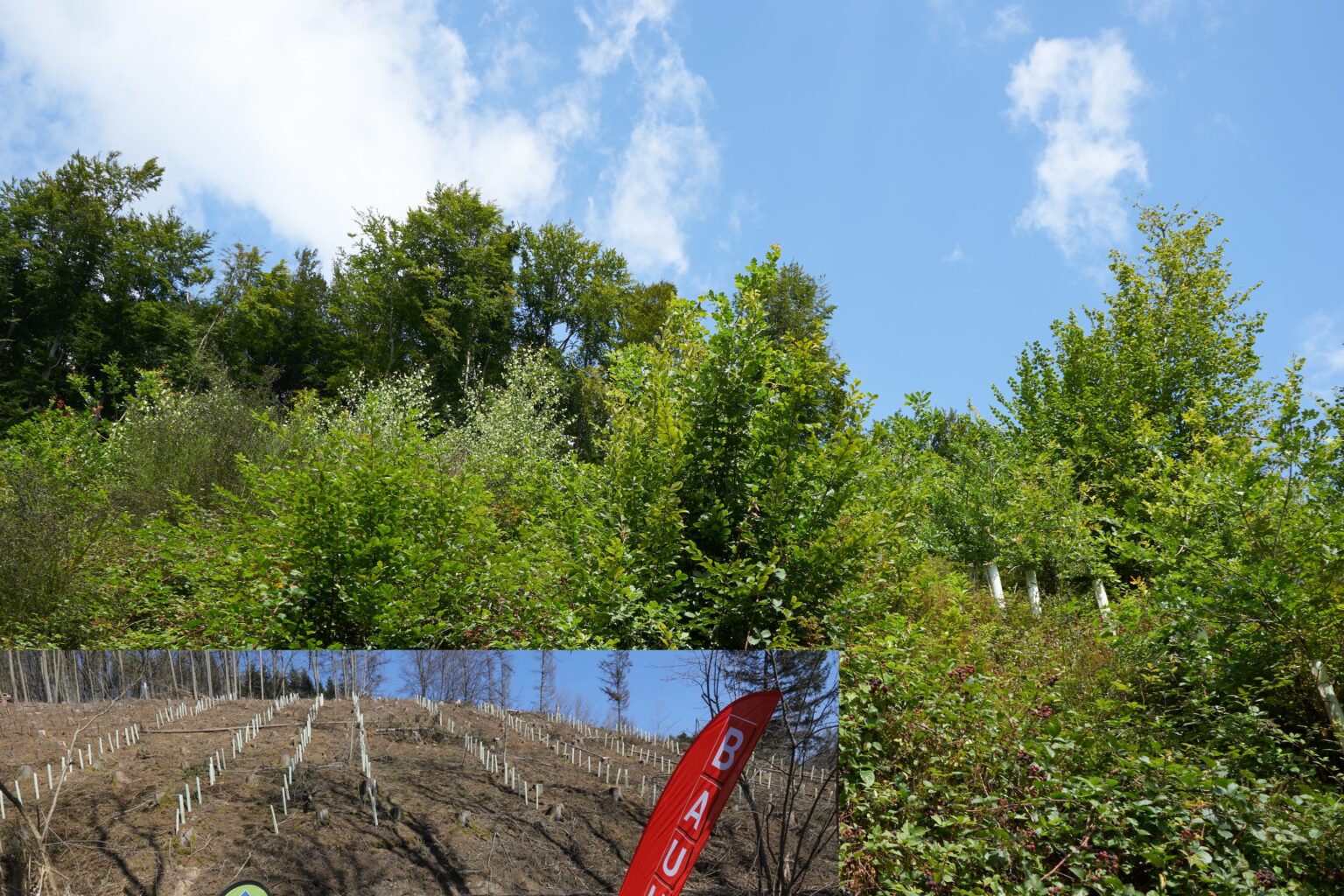 Jetzt 4 Jahre später haben sich der Waldeigentümer, der Sponsoren mit etwa 40 Kunden, die inzwischen zuständige Försterin und Vertreter der Schutzgemeinschaft Deutscher Wald vor Ort in Overath getroffen, um zu sehen, was aus der Initiative geworden ist.